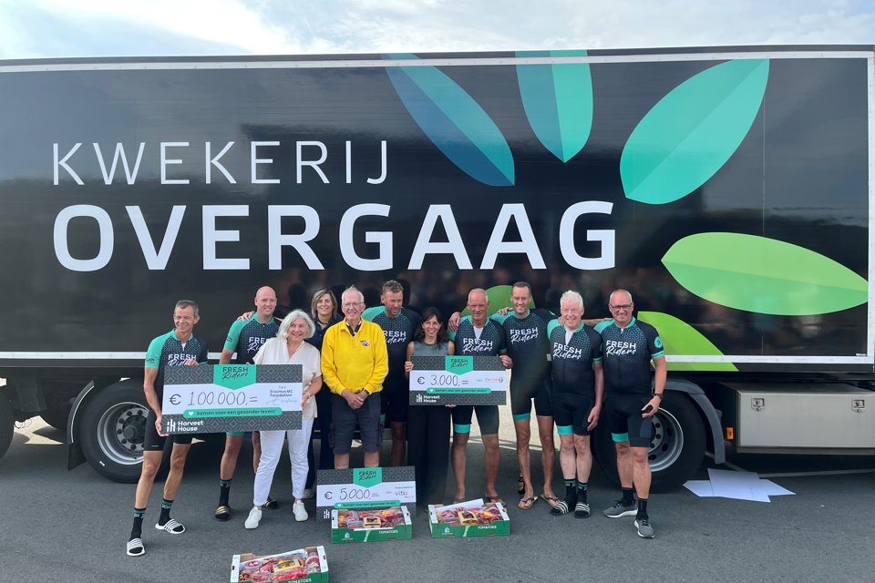 Met dank aan de vele sponsoren en de deelnemers die de verplichting van het verkopen van groenteboxen op zich namen, overhandigde de Freshriders afgelopen zaterdag een cheque ter waarde van €100.000,- aan de Erasmus MC Foundation. Zij besteden dit bedrag aan verder onderzoek en ontwikkeling in de strijd tegen kanker.